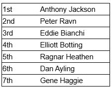 We had 10 competitions over the weekend, below are the results . Results are shown as provided by umpires. There are photos from the event on the club Discord and Facebook group.